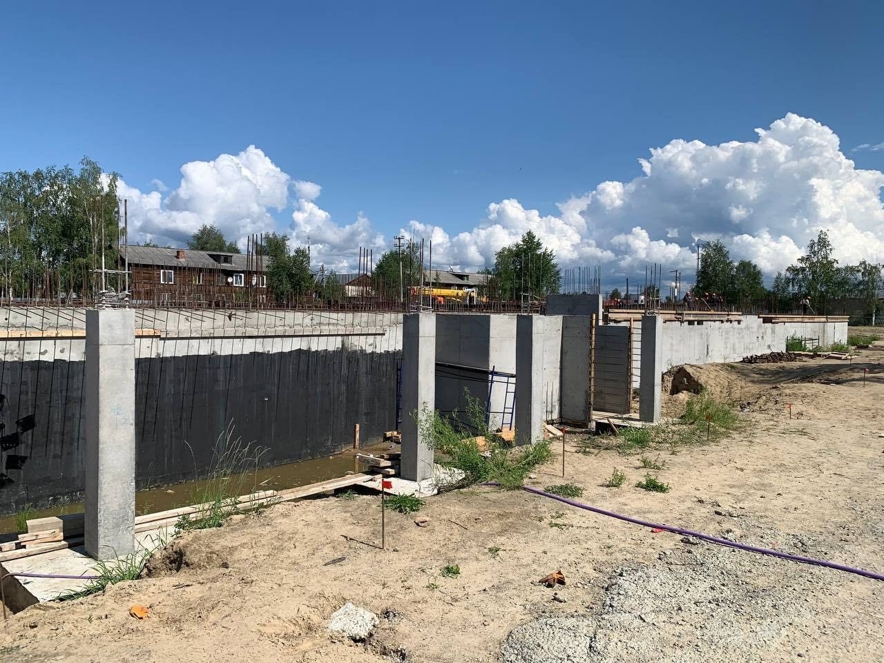 Подрядчиком выполнены работы по увеличению плиты основания подвала и заливка бетона на уровень проектной отметки. Произведен монтаж стен каркаса для заливки перегородок подвала. Часть перегородок уже залита бетонным ростверком. Сделано армирование плиты перекрытия, устройство лестничного марша.Сейчас идут работы по монтажу плиты перекрытия. Таким образом, общая готовность строящегося объекта составляет 10 процентов.
