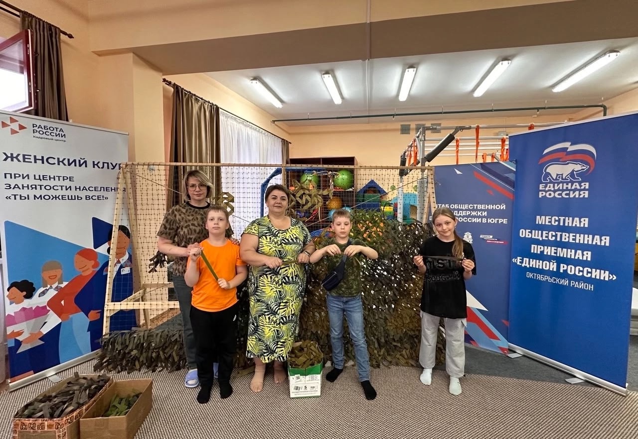 Один из пунктов плетения маскировочных сетей организован на базе Штаба общественной поддержки в Центре социального обслуживания населения «Доброта» в поселке Октябрьское. Несмотря на летние каникулы и время отпусков, учащиеся средней школы и партийцы вносят свой посильный вклад в помощь госпиталям и нашим бойцам, находящимся на СВО.