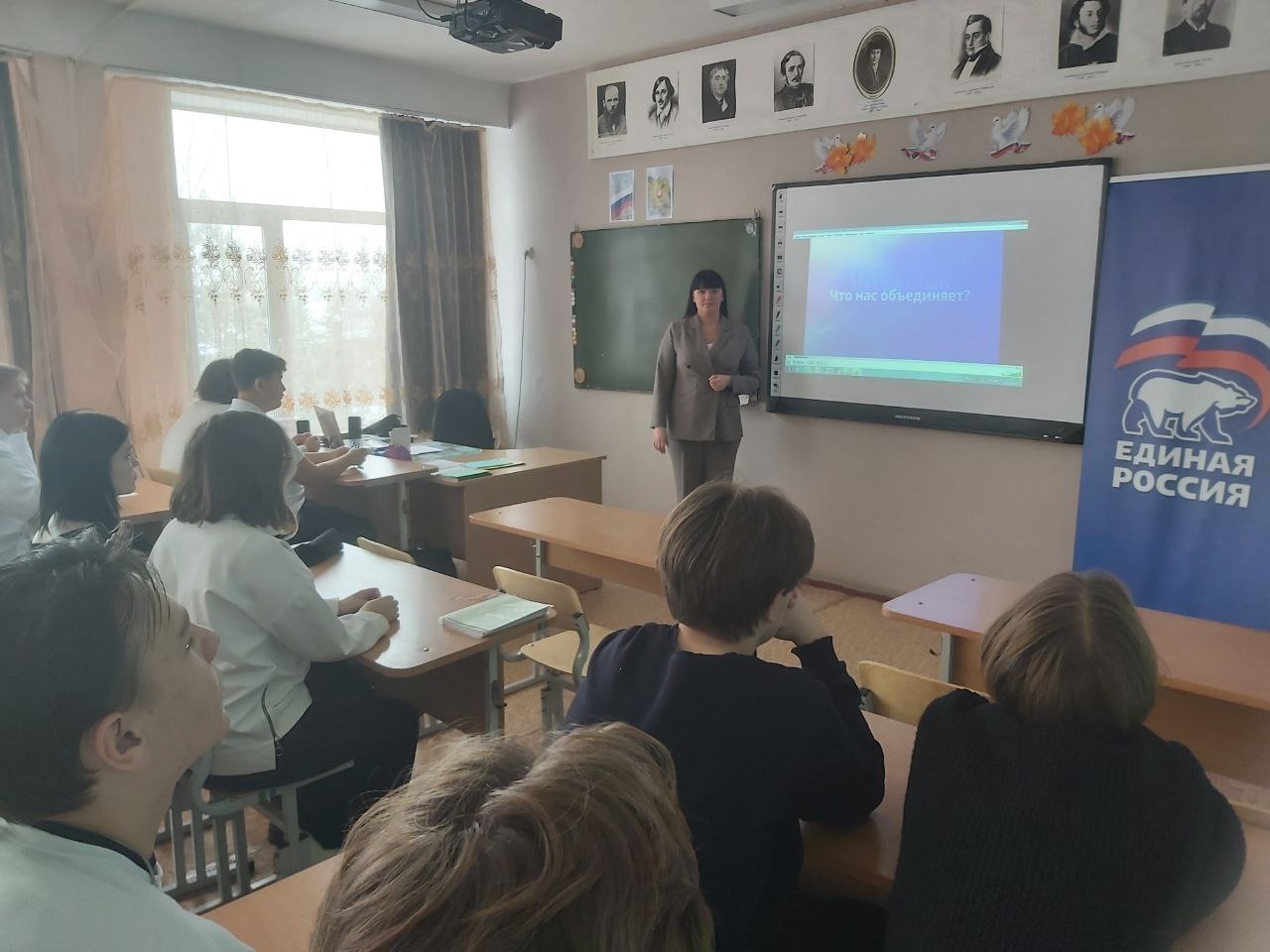 Секретарь первичного отделения партии «Единая Россия» N43 в поселке Приобье Ксения Заболотская совместно с обучающимися старших классов средней школы приняли участие во Всероссийской детской культурно-просветительской акции «Я - россиянин», приуроченной ко Дню народного единства.