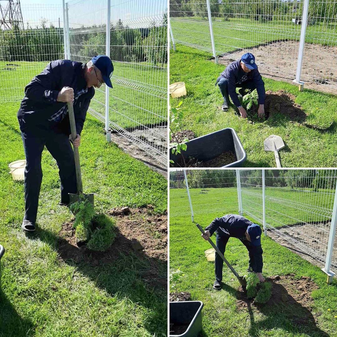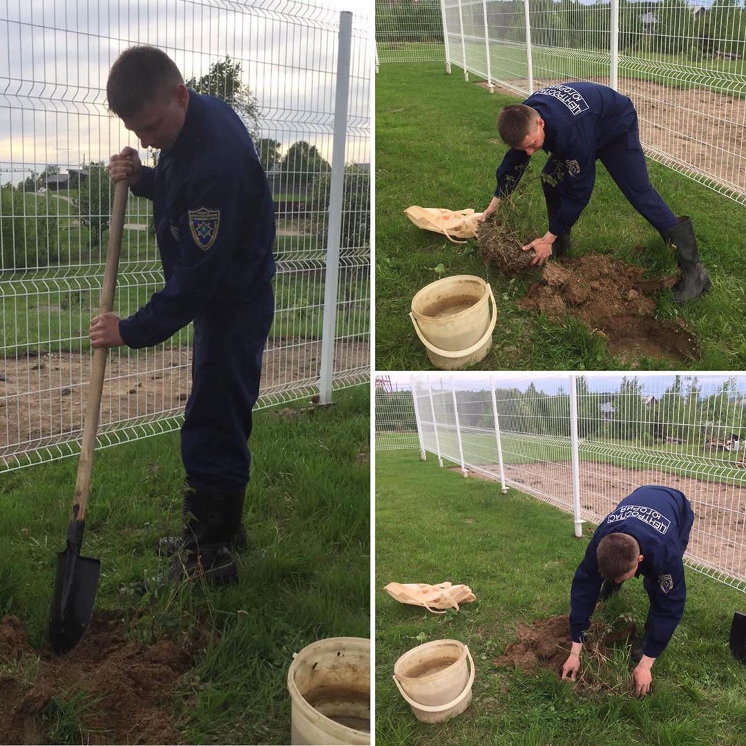 Вся пожарная команда активно участвовала в посадке саженцев деревьев.