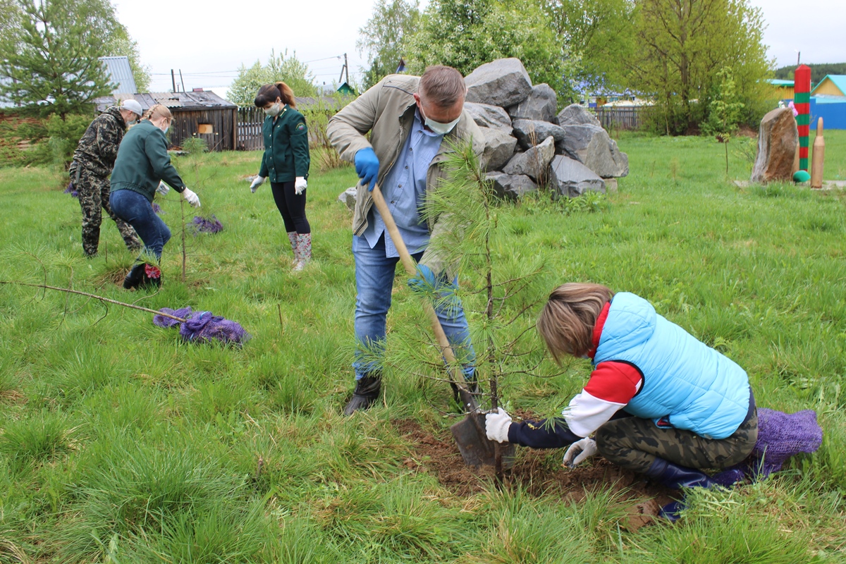 В Октябрьском районе высадили первые 25 саженцев кедров в честь 90-летия Югры