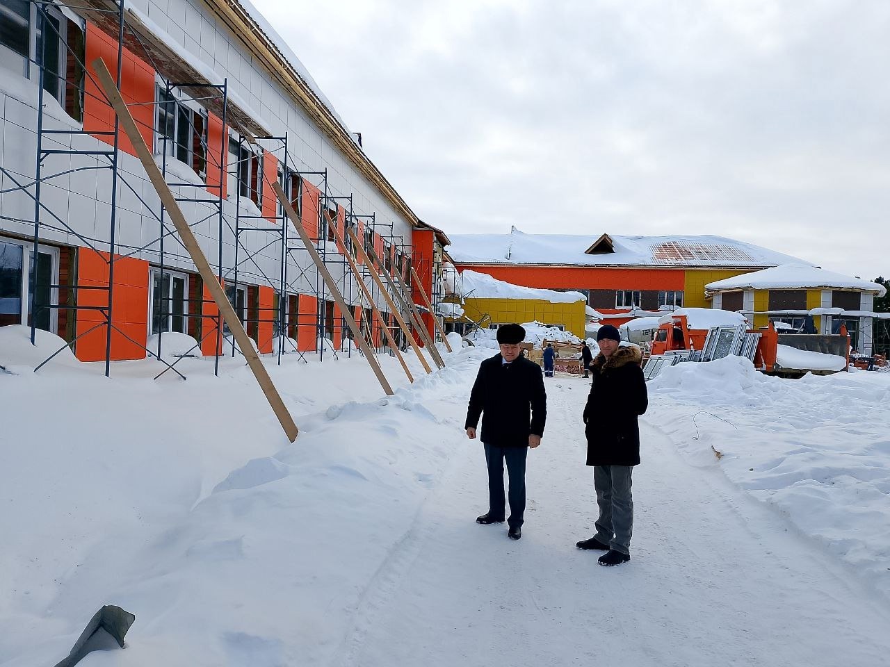 Строительная готовность обновляемого комплекса «Школа – детский сад» в Малом Атлыме достигла 84%