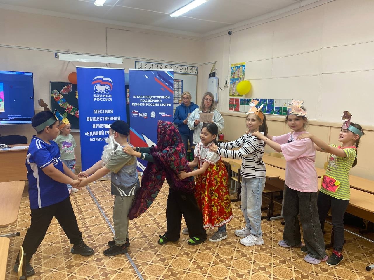 Партийцы Октябрьского района провели занятие по театральному искусству для детей из Приобья