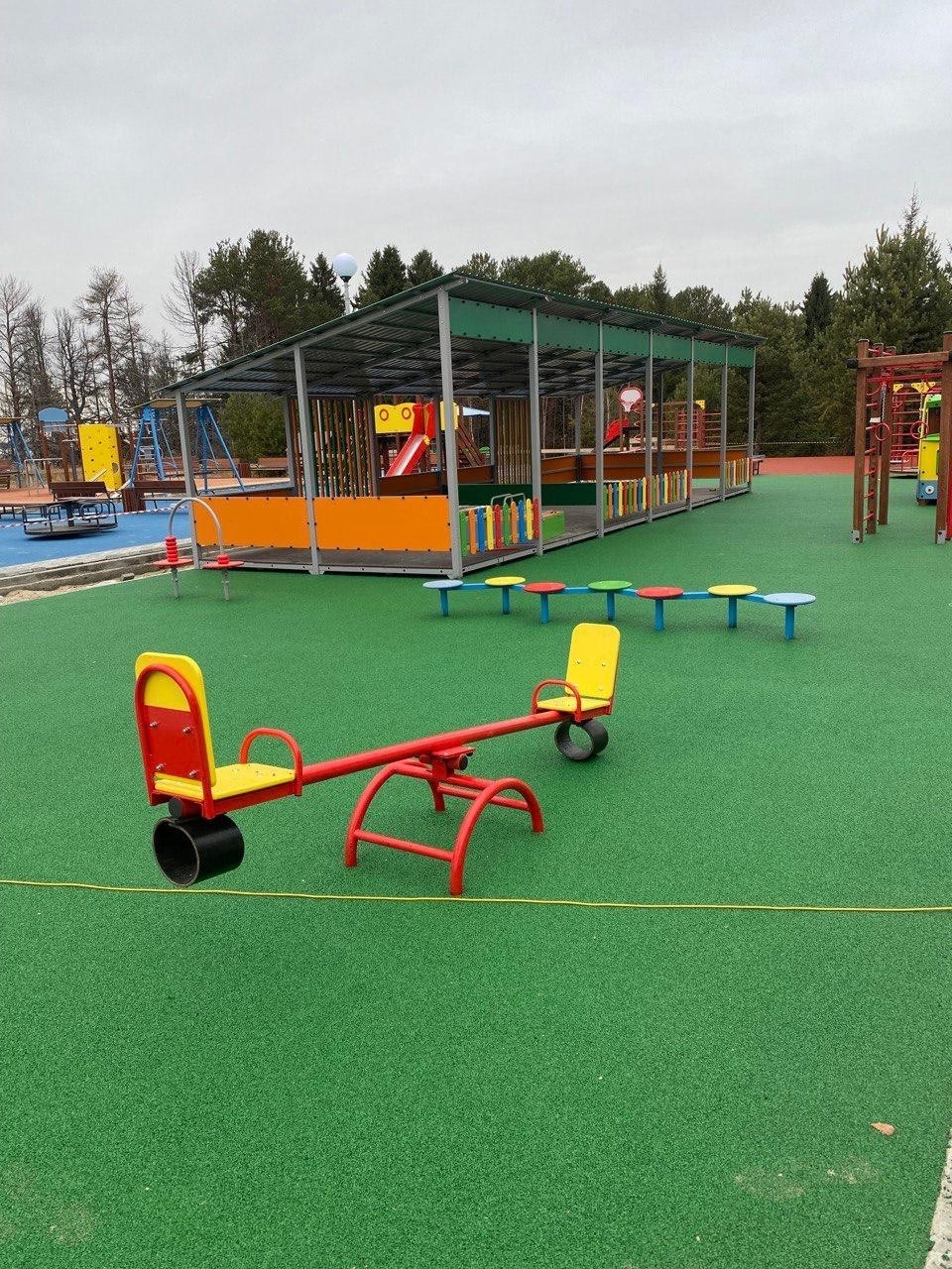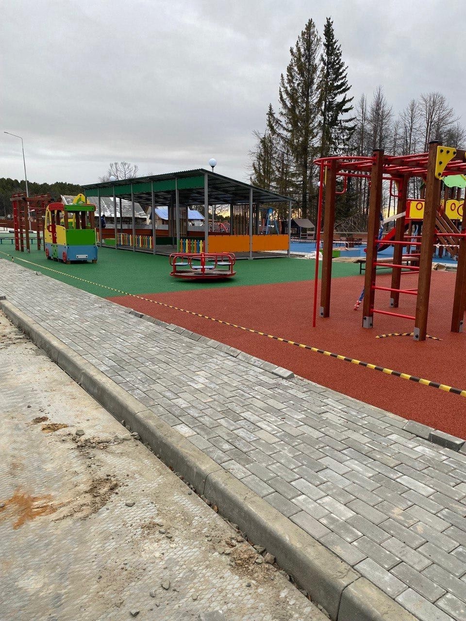 Ведутся работы по благоустройству территории школы - детского сада. Ее общая площадь составляет 2 000 квадратных метров. Произведено устройство поля стадиона, установлены трибуны, смонтированы столбы для монтажа ограждения. Выполнены работы по устройству игровых и спортивных площадок. На стадии завершения строительство тротуаров, площадок, проездов и дорожек.