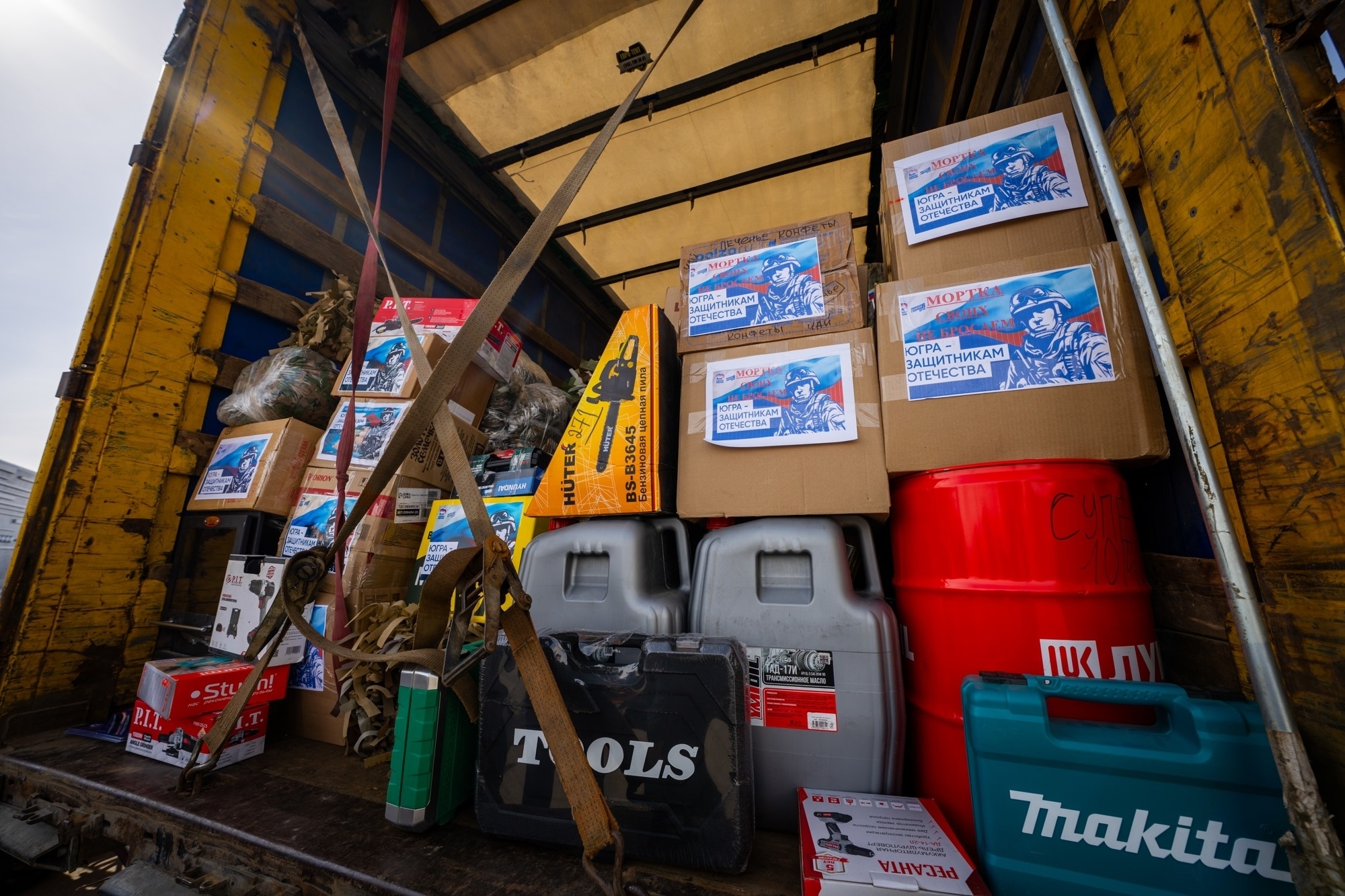 Это третья по счёту фура с экипировкой, средствами связи и навигации, одеждой, инструментами, оборудованием. В этот раз к сбору подключились жители Нягани, Урая, Ханты-Мансийска, Югорска, Белоярского, Берёзовского, Кондинского, Октябрьского, Советского и Ханты-Мансийского районов.