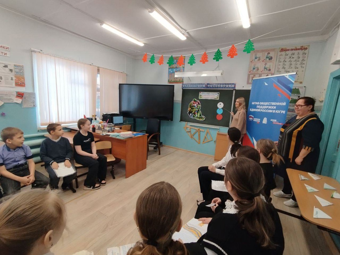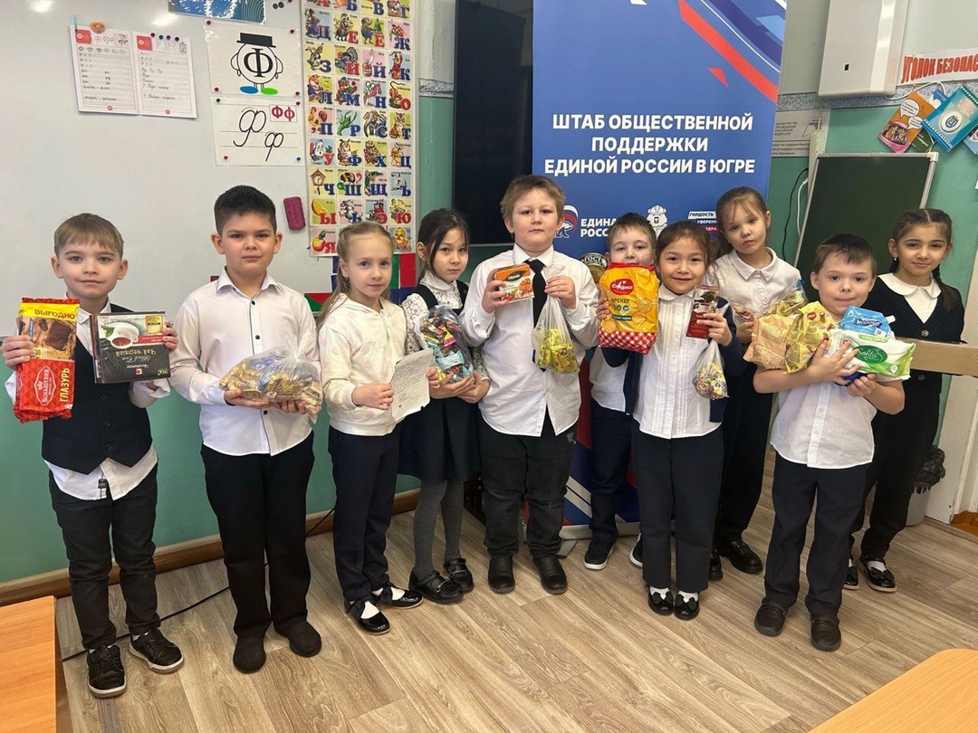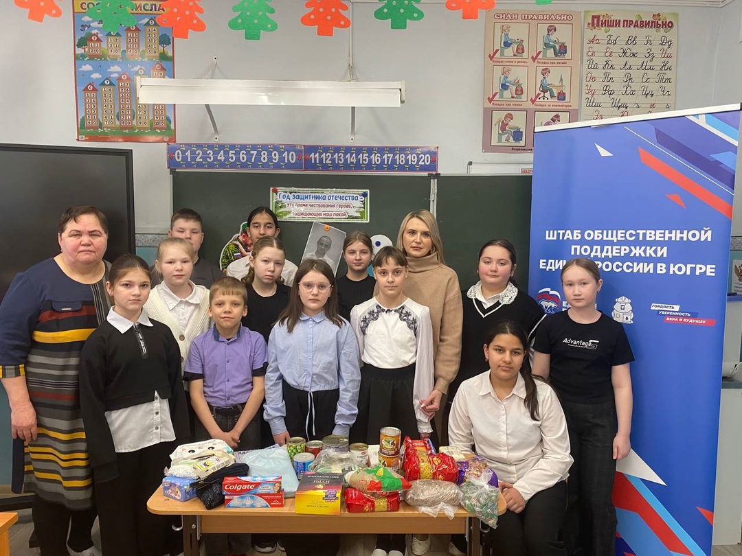 На площадке Штаба общественной поддержки партии "Единая Россия" учащиеся МБОУ «Приобская начальная школа» присоединились к данной акции. Ребята собрали посылки с продуктами, теплыми носками и товарами личной гигиены. В посылки дети положили письма и открытки для солдат ко Дню защитника Отечества.