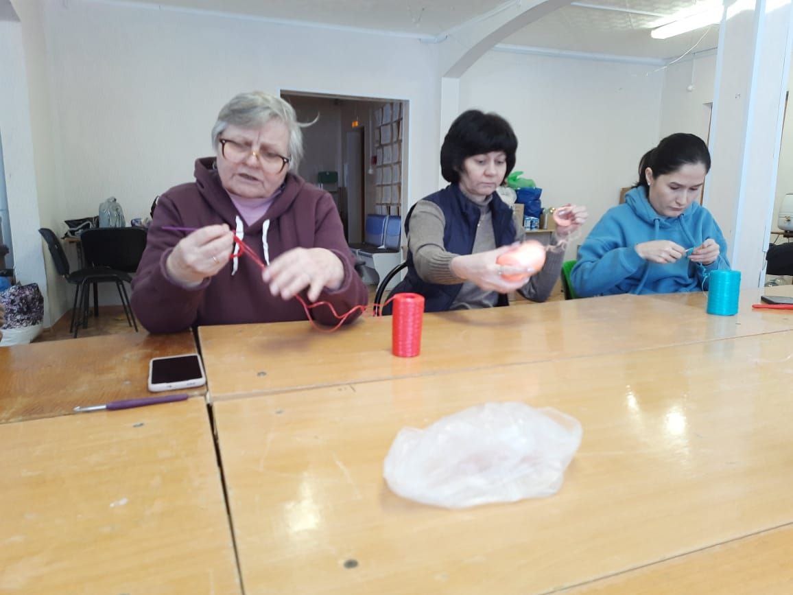 Под руководством Лилии Махсутовны участники ознакомились с техникой вязания. Для вязания мочалки женщины использовали полипропиленовые нити, крючки для вязания и ножницы. Все созданные мочалки будут отправлены военнослужащим, принимающим участие в специальной военной операции.