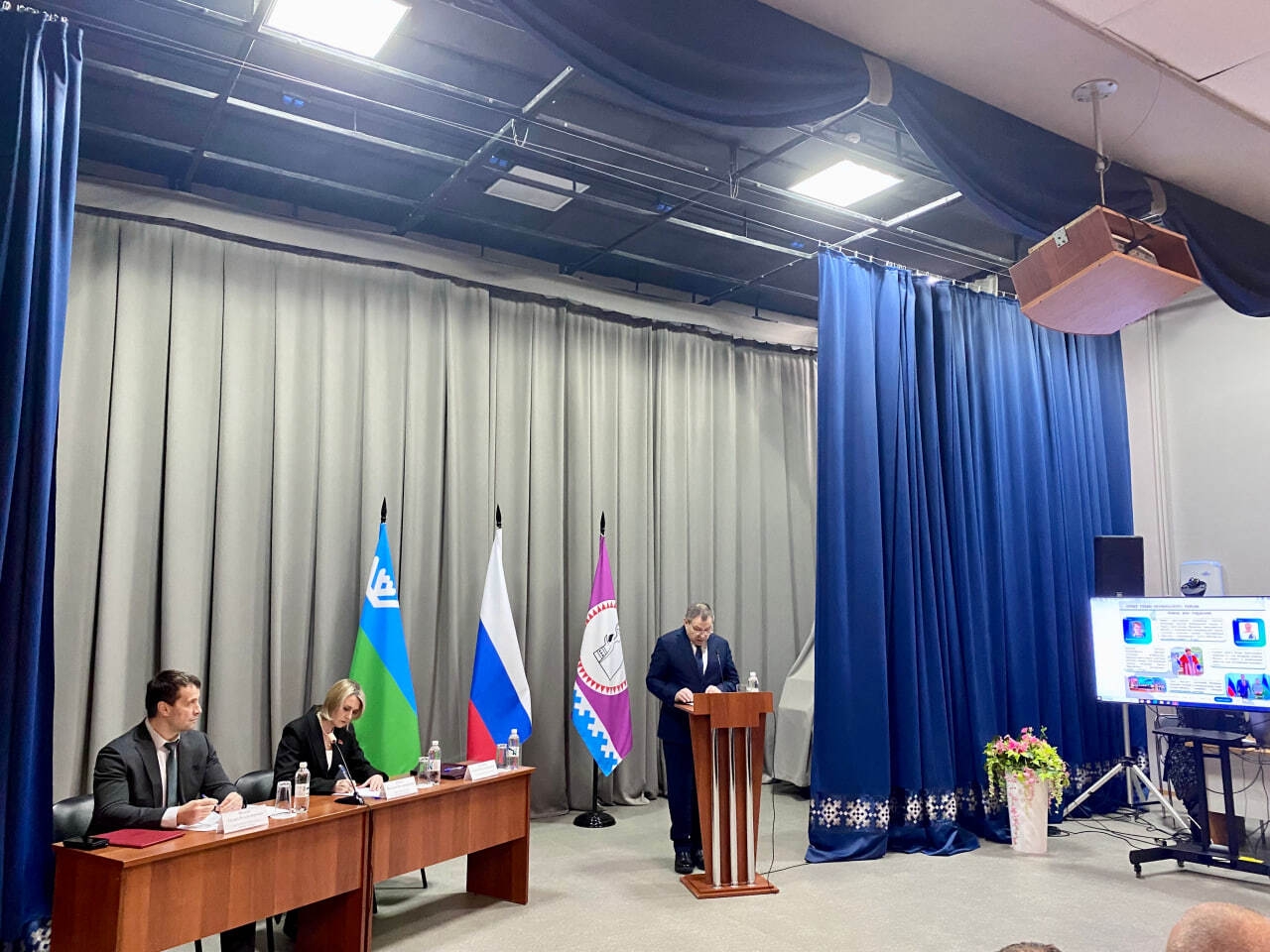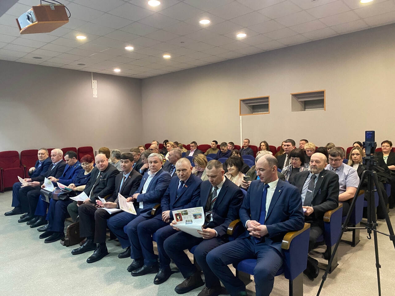 Докладчиком выступил Сергей Заплатин, представивший итоги работы главы и администрации Октябрьского района за 2025 год.