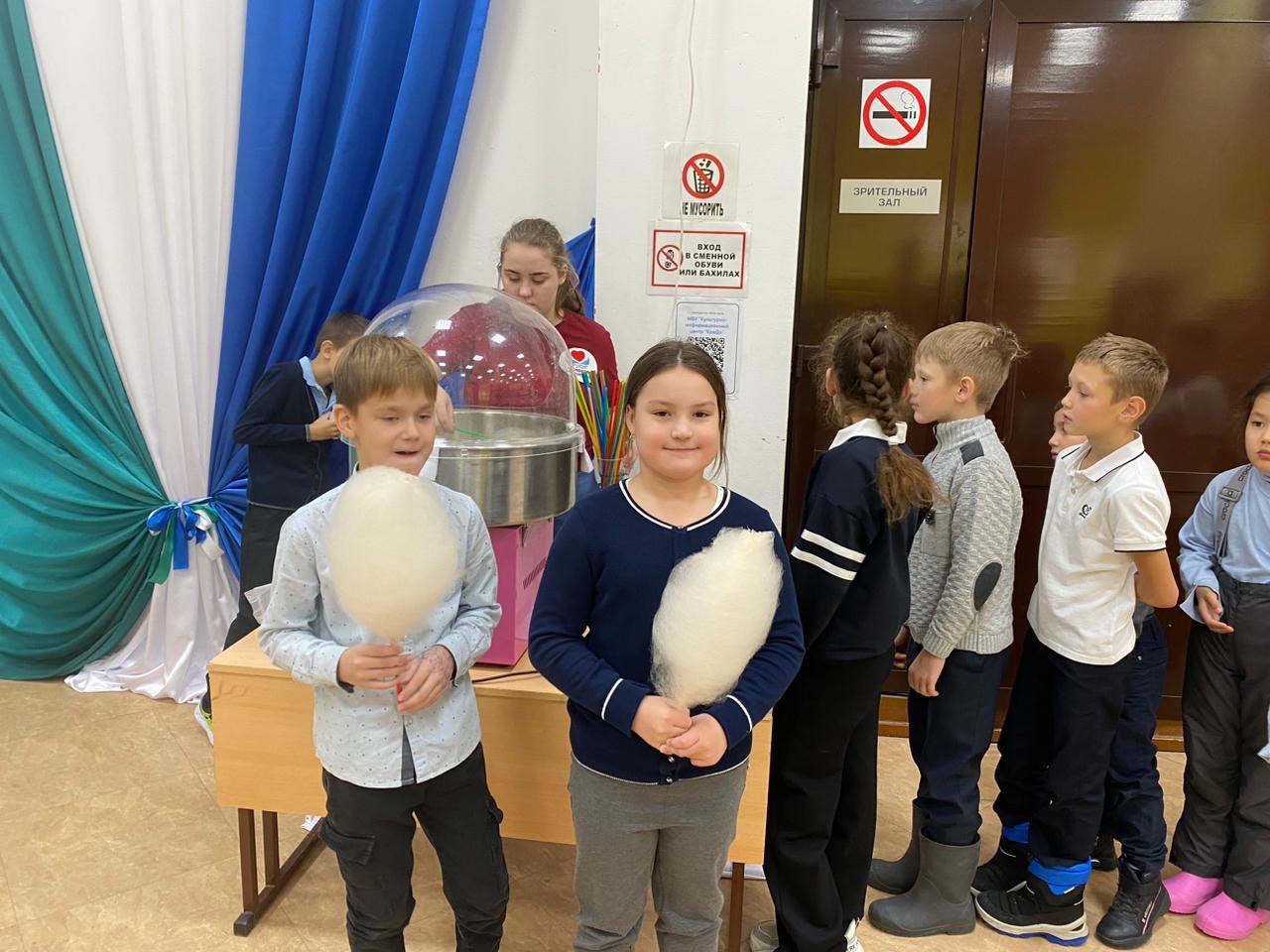 В завершении мастер-класса волонтеры угостили ребят вкусной сладкой ватой.