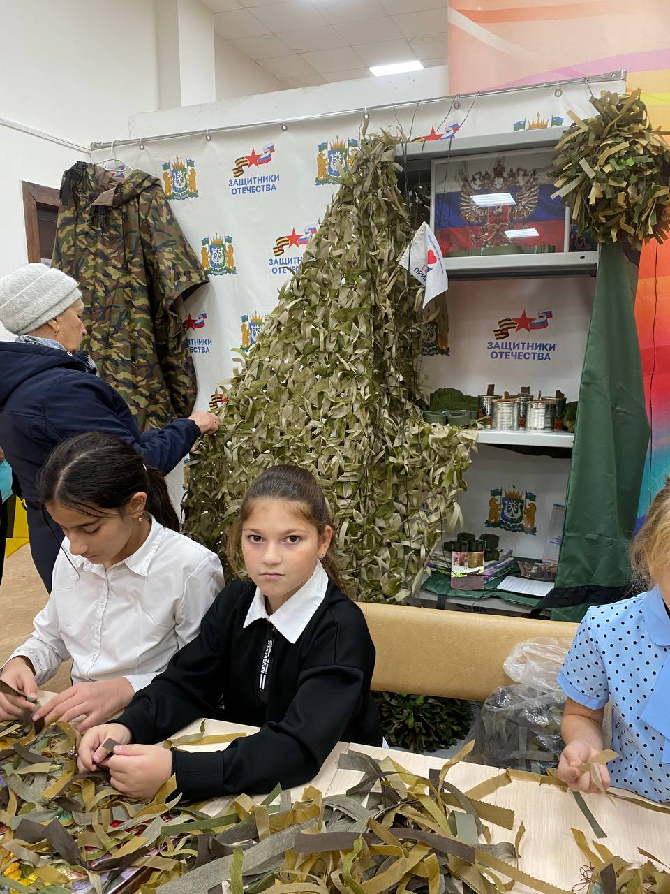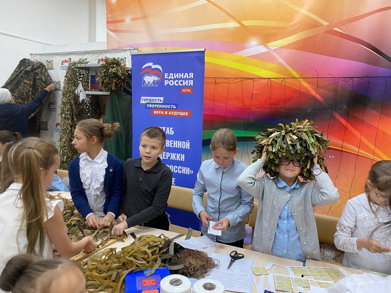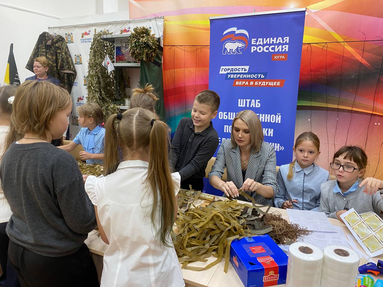 На базе Местной общественной поддержки партии «Единая Россия» в Приобском Культурно-информационном центре «КреДо» при содействии волонтеров Приобья прошла благотворительная ярмарка и мастер-класс по изготовлению нашлемников, маскировочных сетей, армейского сухого душа и противодронных одеял.