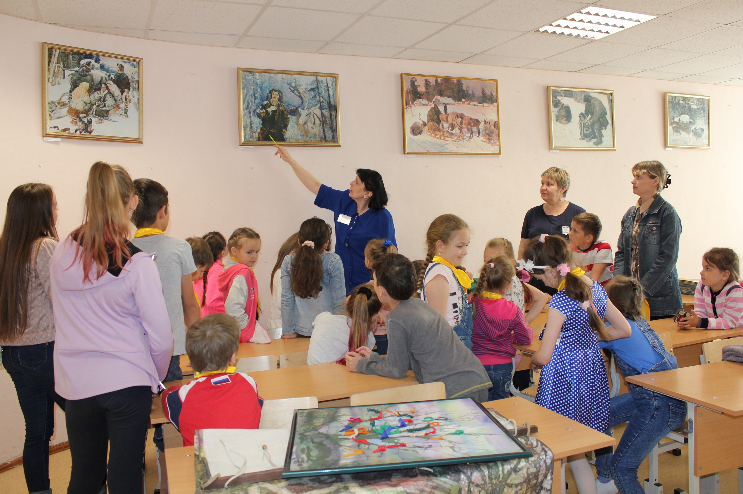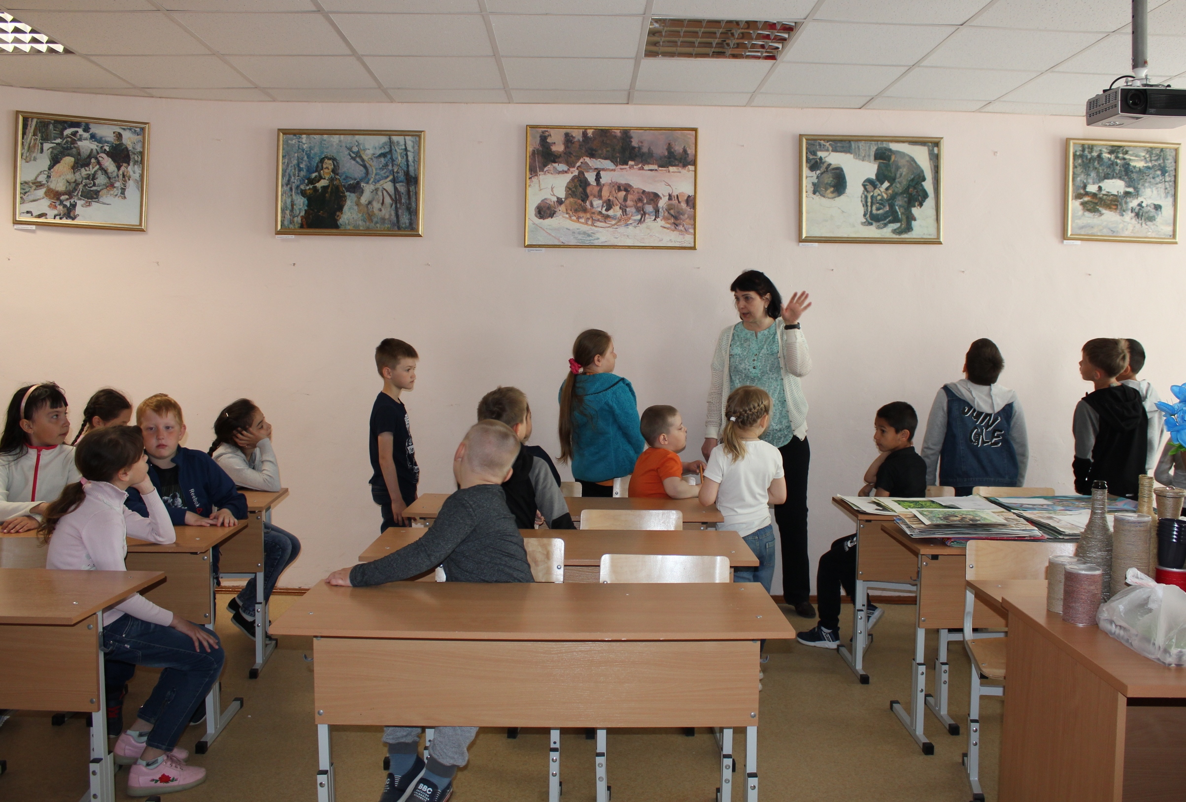 В фойе МКОУ "СОШ №7" выставлены постеры работ художника из северного цикла, которые нам любезно предоставил Дом-музей народного художника СССР В. А. Игошева.