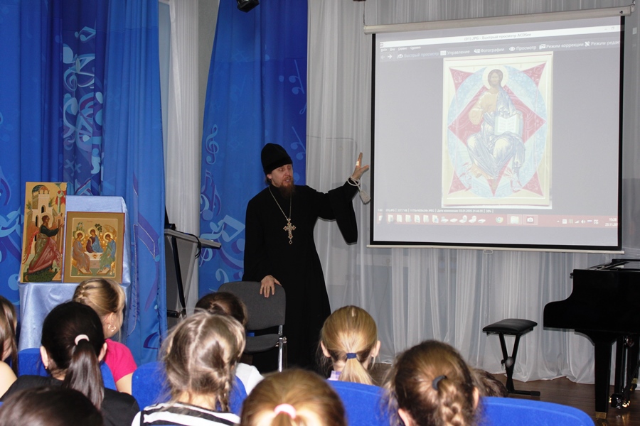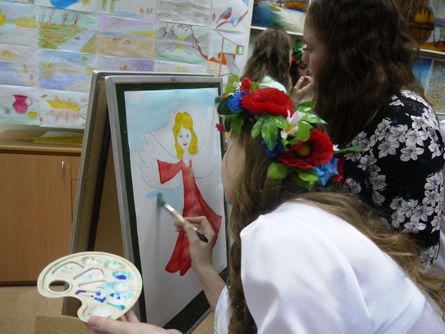 В Районной школе искусств мероприятие было проведено с привлечением игумена Свято-Троицкого Архиерейского подворья о. Алипия. Для учащихся был подготовлен концерт-лекция, а также проведены мастер-классы по изготовлению фигурок Ангела из различных материалов.