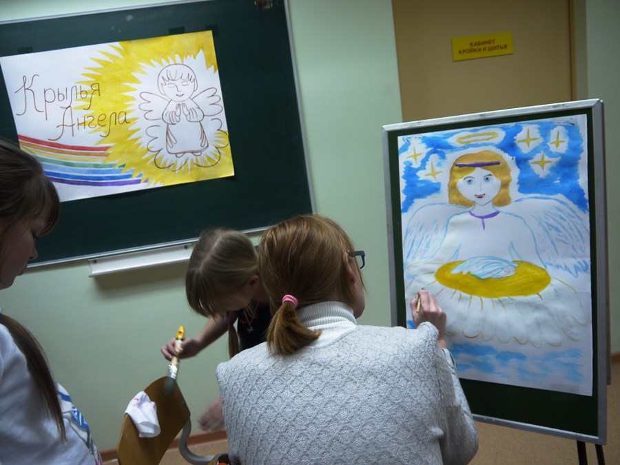 В Центре внешкольной работы «Смена» в пгт. Октябрьское для участия в акции были привлечены не только дети, но и их мамы. Пока дети рисовали Ангела, мамы приняли участие в импровизированной творческой мастерской и создали макет Ангела.