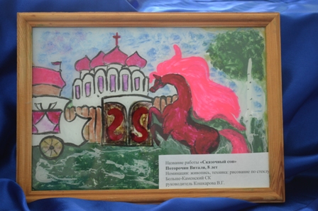 В номинации декоративно – прикладное творчество наибольший восторг вызвала работа Алины Швидченко, воспитанницы Большекаменского сельского дома культуры.Работы в номинации живопись оценивались и по возрастным категориям.