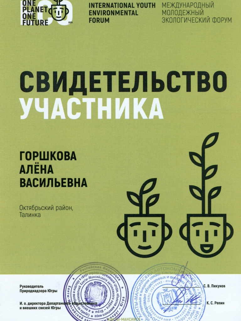26-30 мая 2019 года в г. Ханты-Мансийске состоялся Международный молодежный экологический форум «Одна планета – одно будущее!», который собрал более 150 человек: участников XII международной конференции ассоциированных школ ЮНЕСКО «Обь – Иртышский бассейн: молодежь изучает и сохраняет природное и культурное наследие в регионах великих рек мира» и XV молодежного экологического Форума «Сохраним цветущий мир Югры».