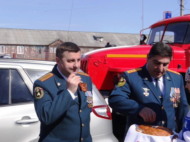 Перед церемонией разрезания ленты, Анатолий Дмитриевич вручил символический ключ от нового депо начальнику пожарной части Григорьеву Анатолию Альбертовичу. По старинному русскому обычаю дорогих гостей встречали хлебом и солью, после чего для всех гостей была проведена экскурсия по новому зданию, которое оборудовано с учетом всех современных требований, предъявляемых к пожарным частям: диспетчерская, учебный класс, душевые, уютные комнаты отдыха и приема пищи.