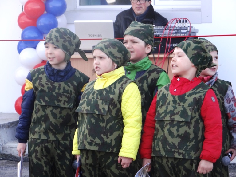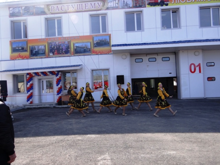 Поздравить с открытием нового здания Пожарной части пришли юные жители поселка: агит- бригада «Юные пожарные» прочитали стихи о пожарной безопасности (воспитанники Детского сада «Радуга»), Даниэль Рахматулин, ученик Начальной школы, исполнил песню «Отважный пожарный» (руководитель Елена Енина). Хореографический коллектив Приобского Дома культуры, под руководством Натальи Важениной, подарил зажигательный танец.
