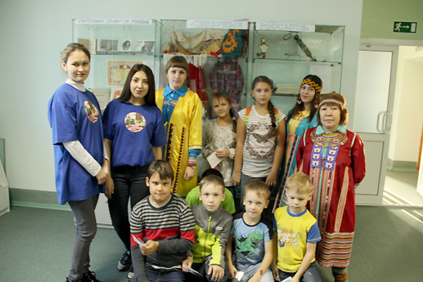 Гостей встречали работники культуры в костюмах народов ханты. Экскурсовод познакомила гостей с обстановкой традиционной русской избы и предметами хозяйственного обихода, также рассказала о традициях народов ханты, о тонкостях создания и вышивке орнамента на одежде и изготовлении обуви.