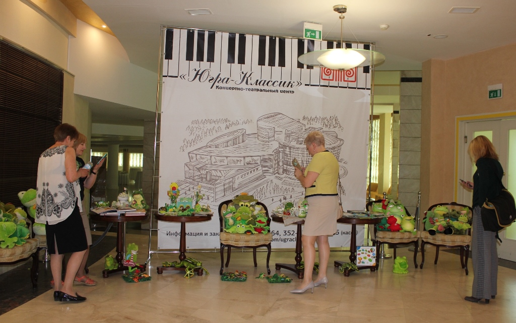 Стеллажи с самыми разнообразными лягушками: от мягкой игрушки до сувениров из камня и драгоценных металлов вызывали самые разные эмоции: удивление, восхищение, любование и умиление. Мария Кузьминична Волдина, первая хантыйская поэтесса, журналист, педагог, была приятно удивлена нашей выставкой и рассказала нам много интересного о лягушках. Оказывается, слово лягушка переводится с хантыйского языка так: «умна, разумна и неповторима в движениях». Народы ханты называют ее «прародительницей» и считают, что лягушка покровительствует рыболовству, защищает дом от злых духов и приносит счастье.