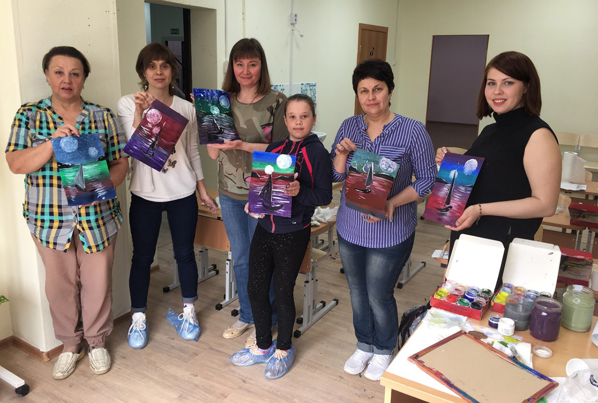 Прекрасные, завораживающие пейзажи молодой художницы посмотрели жители Приобья. Илона Григорьевна провела мастер-классы с детьми лагеря с дневным пребыванием детей «Путешествие по Приобью» муниципального казённого общеобразовательного учреждения «Приобская начальная общеобразовательная школа». Все дети с удовольствием участвовали на занятиях. Каждый унёс домой своё произведение искусств, которое помогла им осуществить мастер своего дела – молодой педагог Илона Бахтиярова. Молодая художница, по просьбе преподавателей Детской школы искусств, провела мастер-класс и для них. Теперь свои собственные картины есть и у преподавателей ДШИ. Всё очень интересно, и с помощью мастерства молодого художника получились у всех замечательные пейзажи. Дети и преподаватели получили эмоционально положительный заряд и прекрасное настроение.