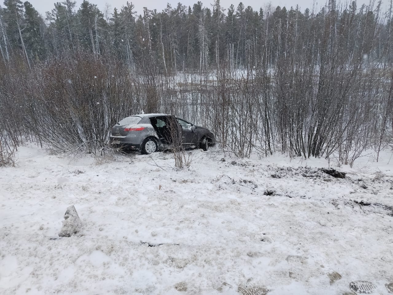 29.04.2025г. в 07:40 на 187 км автодороги "Югра" водитель 1980 года рождения, управляя автомобилем "Renault Megane", двигаясь из г. Югорска в г. Ханты-Мансийск, по предварительным данным, при завершении маневра обгон не справился с управлением и допустил съезд с дороги с опрокидыванием в правый по ходу движения кювет.