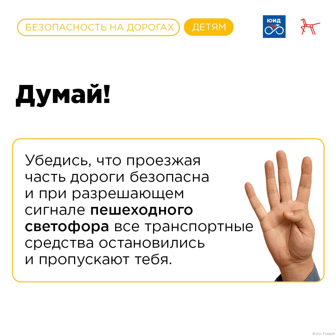 Валентина Кульбицкая, председатель Общероссийской общественной детско-юношеской организации по пропаганде безопасности дорожного движения ЮИД: «Необходимо, чтобы у детей соблюдение Правил дорожного движения и правил безопасного поведения на дороге стало привычкой, а взрослым следует учить детей находить быстрое решение для выхода из сложной дорожной ситуации. Именно поэтому был разработан метод безопасного перехода дороги — правило "пяти пальцев". Данный метод наглядно показывает, что прежде чем перейти дорогу, нужно выполнить пять действий».
