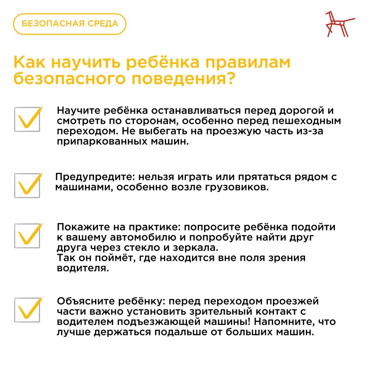 Многие думают, что если они видят автомобиль, то и водитель их тоже заметил. Но это не так! У каждого транспортного средства есть слепые зоны – участки, в которых пешеход или другой автомобиль остаётся невидимым для водителя. Это особенно опасно для детей, ведь они ниже ростом и могут полностью скрыться из поля зрения.
