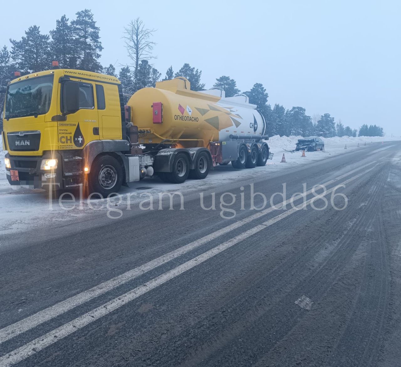 В Сургутском районе произошло столкновение большегруза и легкового автомобиля: есть пострадавшие