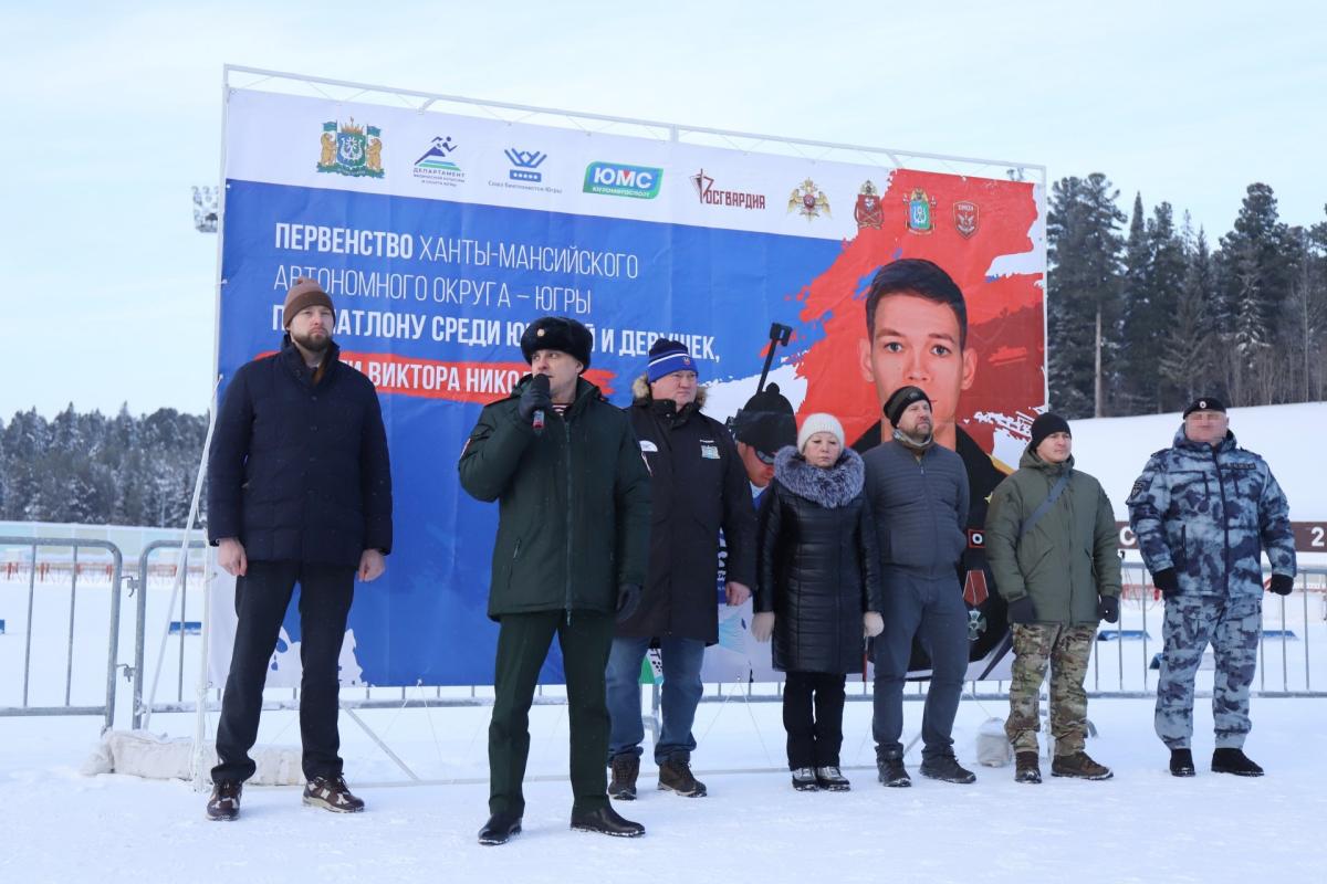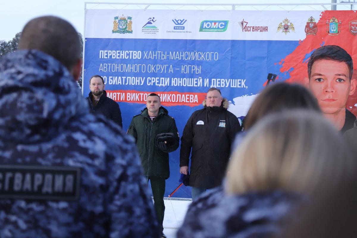 В рамках Года Защитника Отечества в столице Югры на базе Центра зимних видов спорта им. А.В. Филипенко состоялась торжественная церемония открытия Первенства Ханты-Мансийского автономного округа – Югры по биатлону среди юношей и девушек, посвященного памяти сотрудника ОМОН «Стерх» Управления Росгвардии по ХМАО – Югре кавалера ордена Мужества сержанта полиции Виктора Николаева, погибшего при исполнении служебного долга в ходе специальной военной операции.