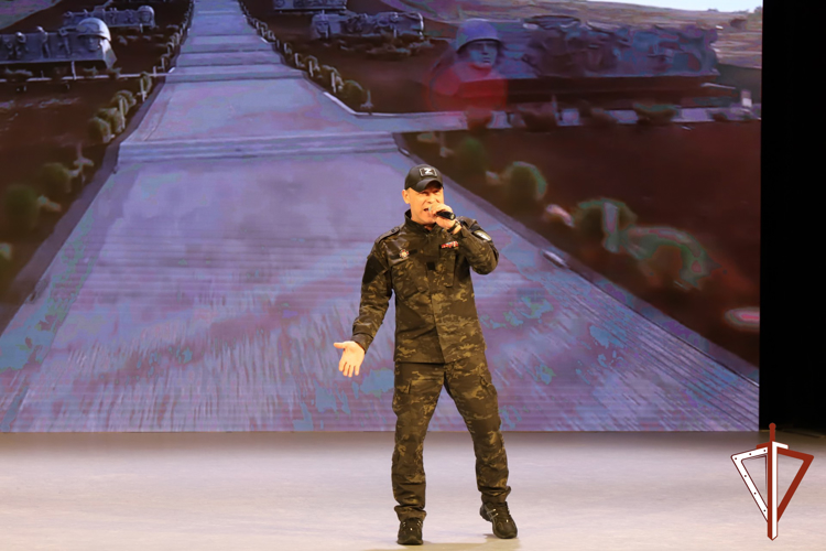 Перед представителями ведомства и членами их семей, ветеранами боевых действий, участниками общественных организаций выступил подполковник спецназа в отставке, руководитель музыкальной группы «Наши», автор народного гимна специальной военной операции «Триста! Тридцать! Три!», волонтер Александр Ванюшкин.