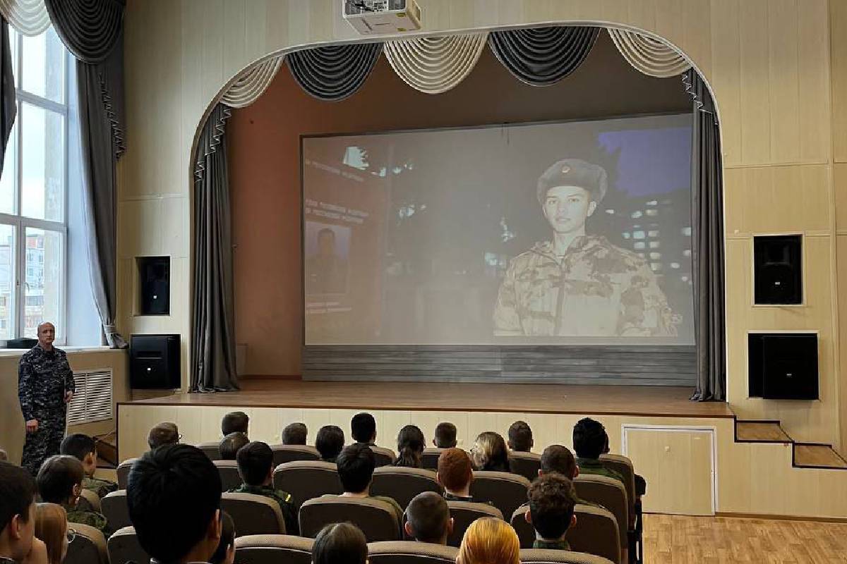 Военнослужащие и сотрудники Управления Росгвардии по ХМАО – Югре продолжают профориентационные встречи с детьми и молодежью, посвящённые Дню рождения великого русского генерала от инфантерии Евграфа Комаровского.