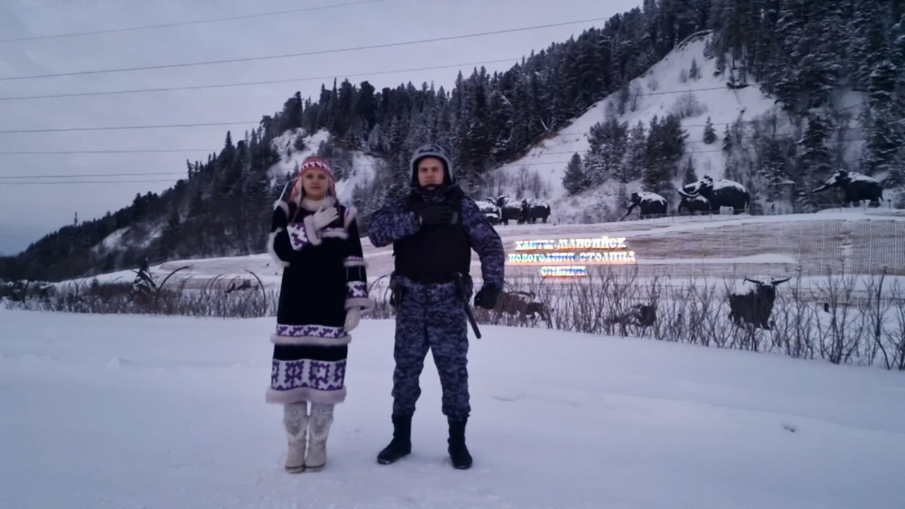 Стражи правопорядка стали своеобразным прологом этого яркого видеорассказа о многообразии России. Сотрудники вневедомственной охраны Югры предстали в паре: старший инспектор Управления вневедомственной охраны капитан полиции Дмитрий Повилягин и его коллега бухгалтер финансово-экономического отдела Анастасия Рагозина в хантыйском национальном костюме.